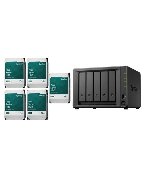 Anzahl Laufwerkschächte: 5, Speicherkapazität: 80 TB, Arbeitsspeicher erweiterbar: Ja, Schnittstellen: RJ-45 (LAN), SATA, USB, Hot-Swap Unterstützung: Ja, Anzahl Festplatten vorverbaut: 5