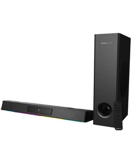 Audiokanäle: 2.1, Detailfarbe: Schwarz, Schnittstellen: 3.5 mm Klinke, Bluetooth, HDMI ARC, Toslink, USB Typ A, USB Typ C, Ausstattung: AUX-Anschluss, Bluetooth, Fernbedienung, Lautstärke- und Bassregler, LED-Beleuchtung, Lichteffekte, Mikrofon